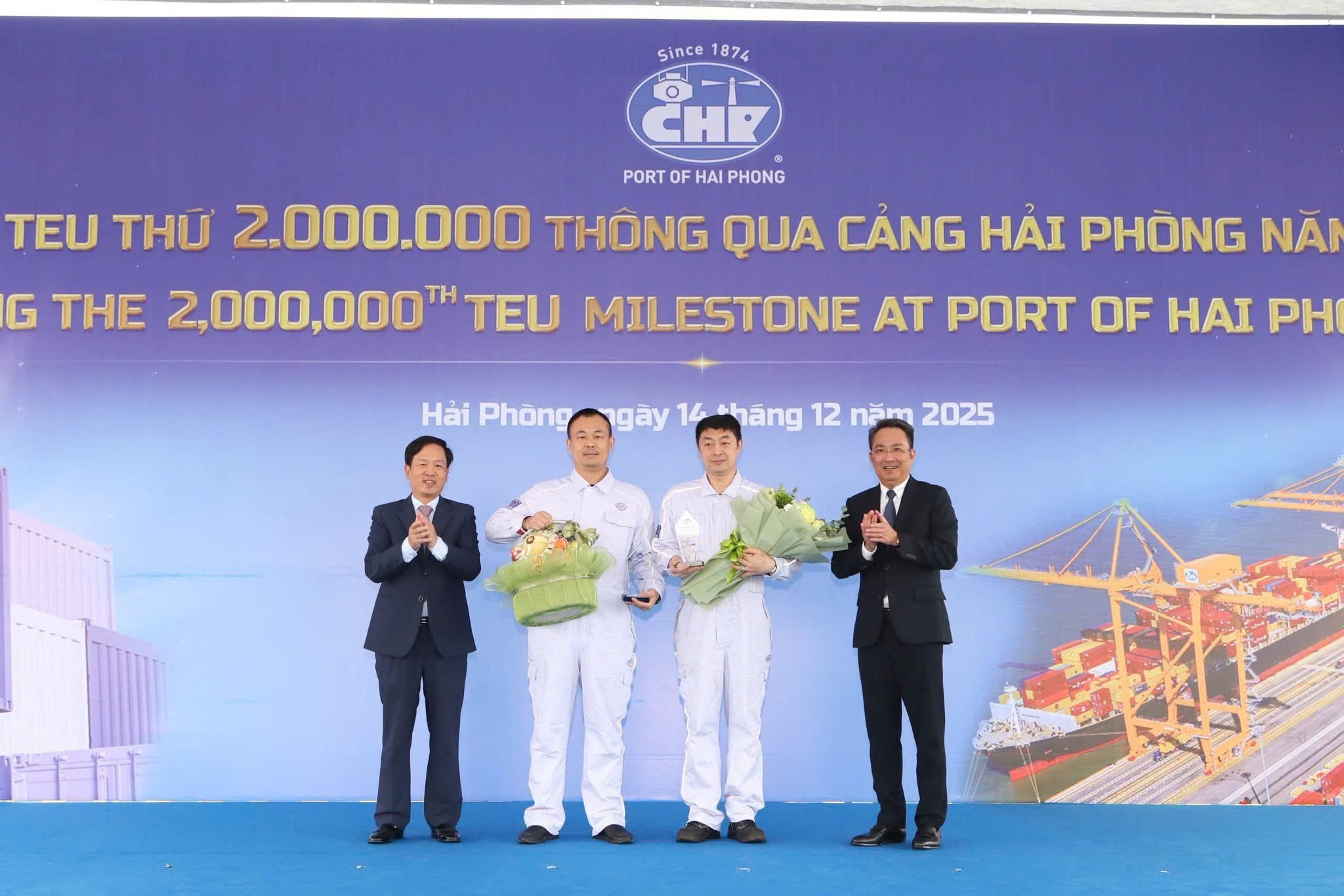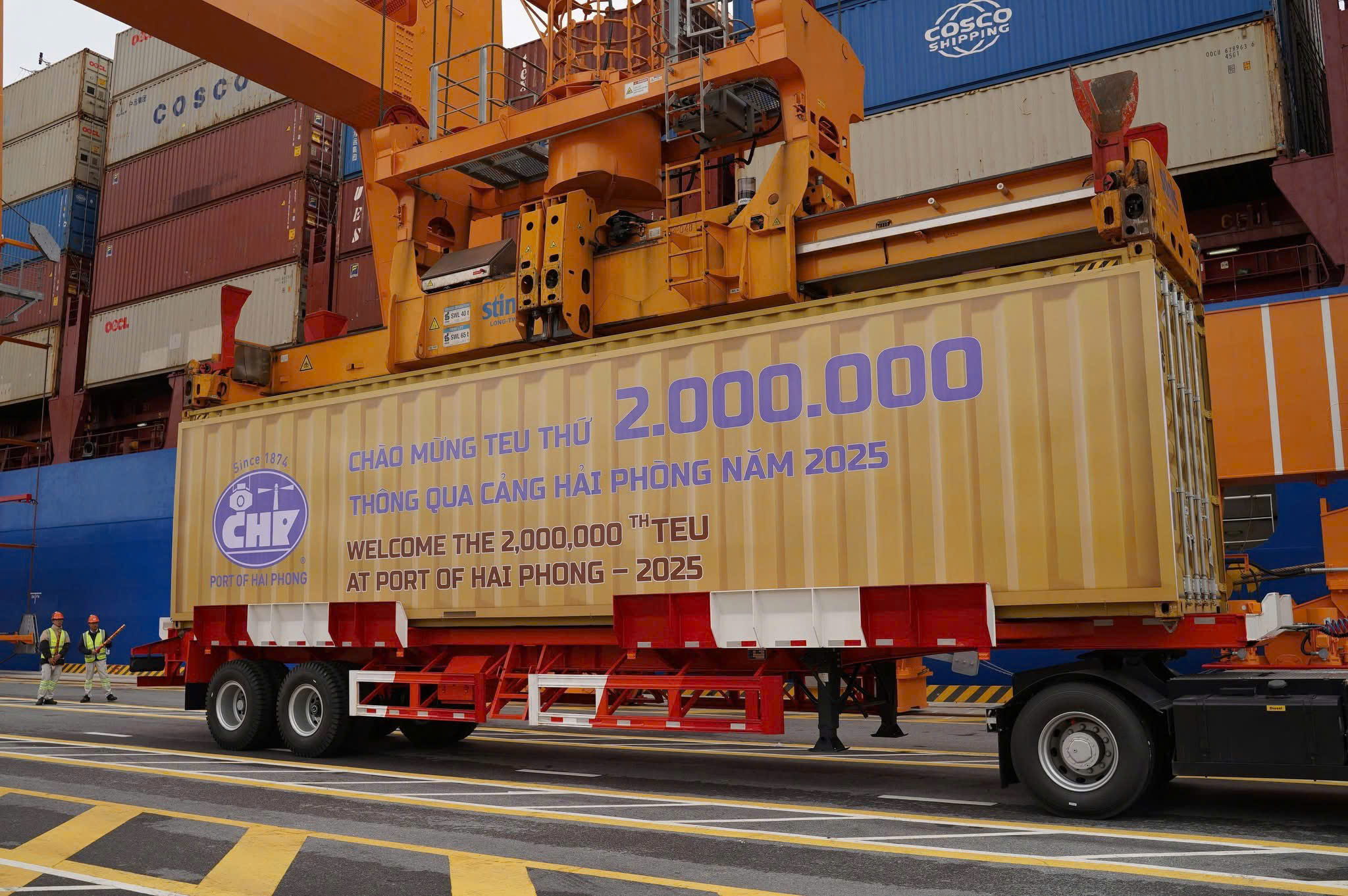 Đây là lần đầu tiên trong hơn 150 năm hình thành và phát triển, Cảng Hải Phòng đạt sản lượng 2 triệu TEU/năm, đồng thời trở thành cảng biển duy nhất tại miền Bắc Việt Nam chạm mốc sản lượng đặc biệt này