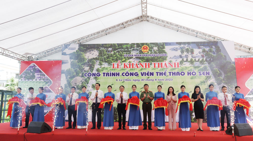 Sáng 30/8, UBND quận Lê Chân tổ chức Lễ khánh thành Công viên Thể thao Hồ Sen, công trình chào mừng kỷ niệm 78 năm Cách mạng tháng Tám và Quốc khánh 2/9. Dự lễ có lãnh đạo thành phố, các sở ngành và đông đảo đại biểu.