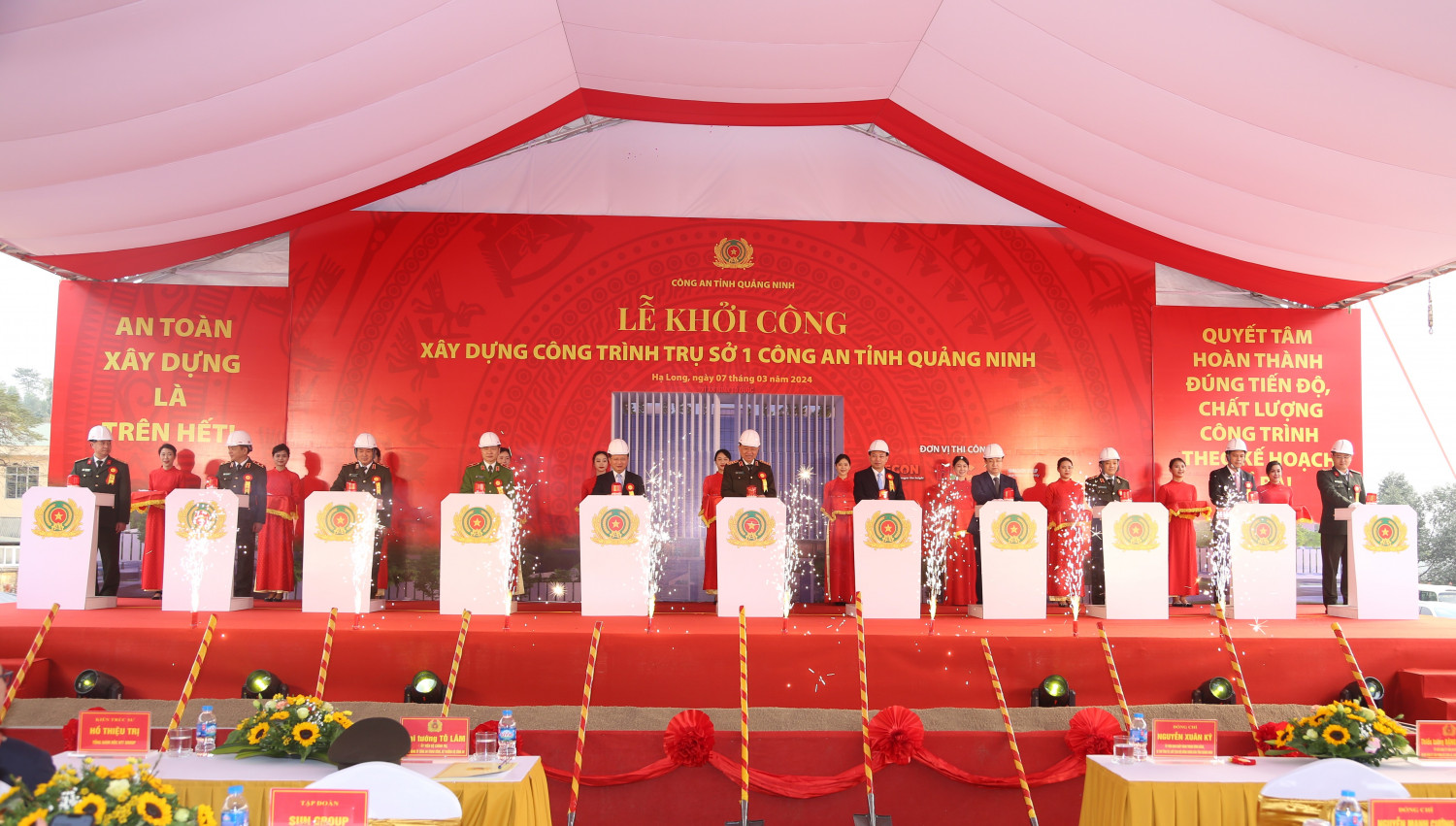 Sáng 07/3 tại TP Hạ Long, Bộ Công an và tỉnh Quảng Ninh tổ chức Lễ khởi công xây dựng Trụ sở 1 Công an tỉnh Quảng Ninh. Dự lễ có Đại tướng Tô Lâm, Ủy viên Bộ Chính trị, Bộ trưởng Bộ Công an; các đồng chí Nguyễn Xuân Ký, Bí thư Tỉnh ủy, Chủ tịch HĐND tỉnh; Cao Tường Huy, Phó Bí thư Tỉnh ủy, Chủ tịch UBND tỉnh; cùng lãnh đạo các sở, ban, ngành liên quan.